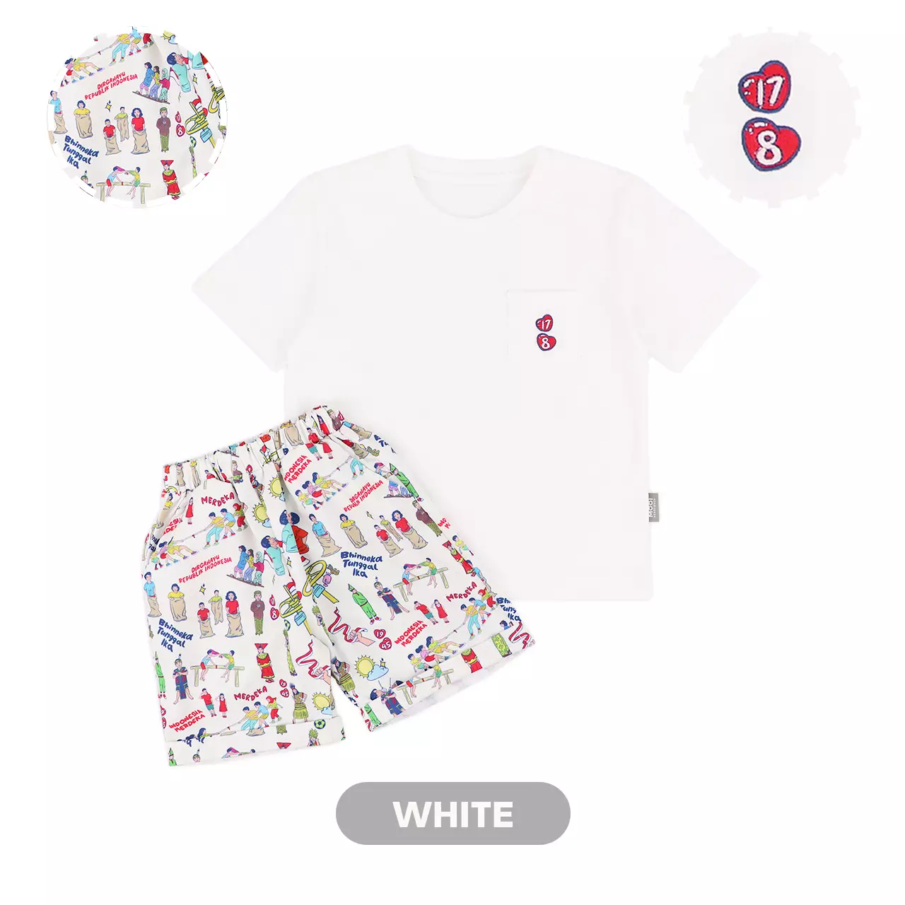 Mooi x Hari Merdeka 17 Agustus Kaos Kemerdekaan Setelan Anak Pocket Tee Set Kemerdekaan - White