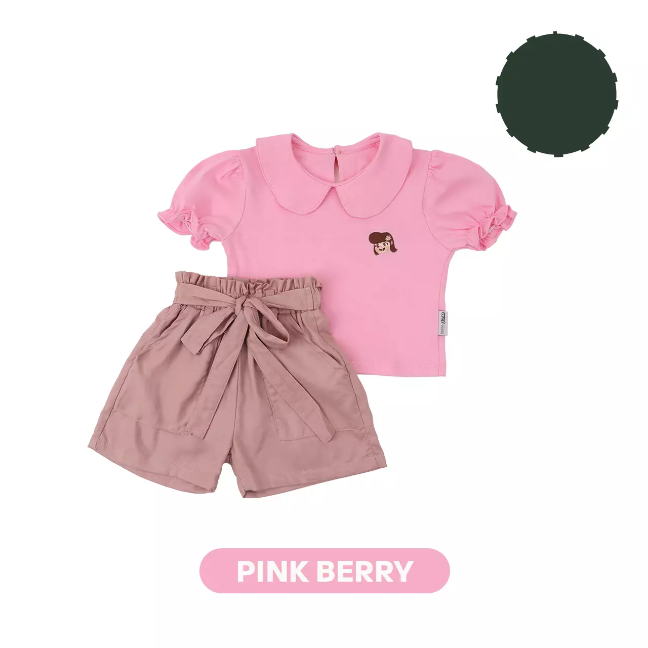 Mooi x Jumbo Setelan Anak Perempuan Meri Collar Set - Pink Berry