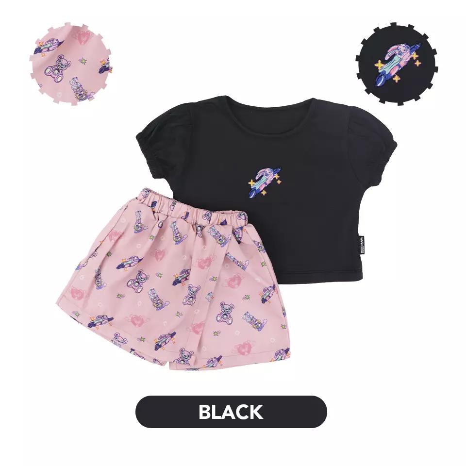 Mooi X Muklay Setelan Anak Perempuan Alena Skort Set - Black