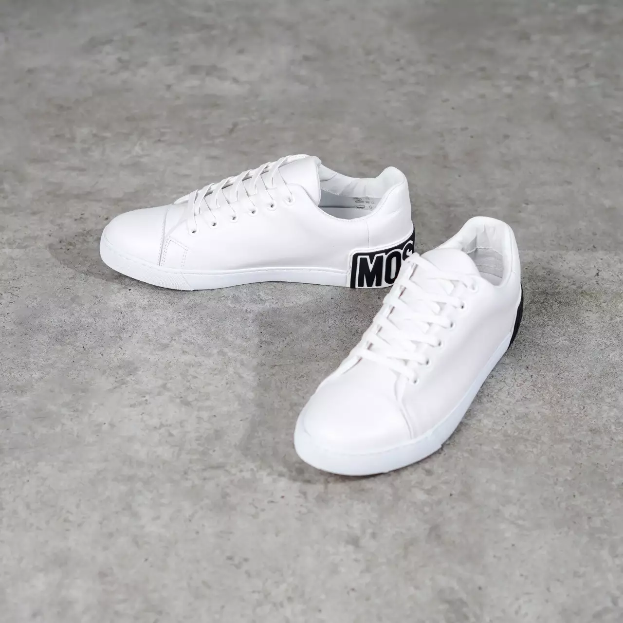Sepatu MOSCHINO TEXT BACK BLACK BABY PINK LEATHER SNEAKER 100% ORIGINAL