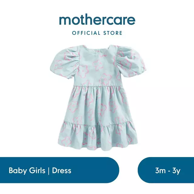 MothercareMothercare Blue Puff-Sleeved Tier Dress - Dress Bayi Perempuan (Biru)499000.00