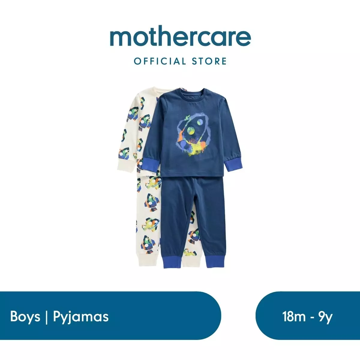 Mothercare Space Pyjamas - 2 Pack - Piyama Bayi Laki-laki (Krem)