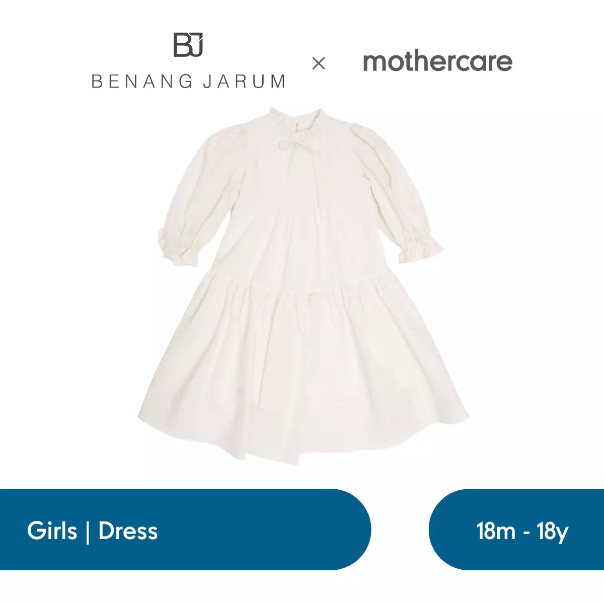 Mothercare x Benang Jarum Raya Collection - Texture Puffy Dress White - Dress Anak Perempuan