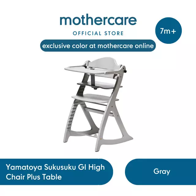 Yamatoya Sukusuku GL High Chair with Table and Guard Gray - Kursi Makan Kayu Anak Bayi