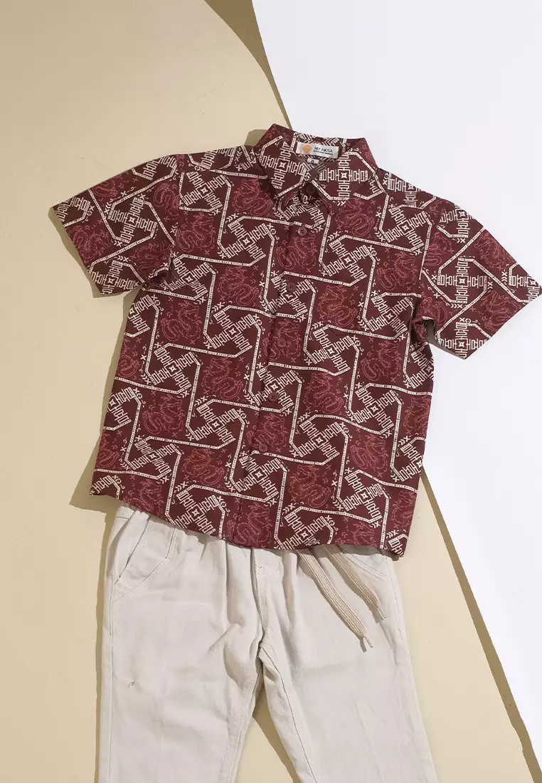 My Aksa Batik Anak Kemeja Pendek Naga Cita Red
