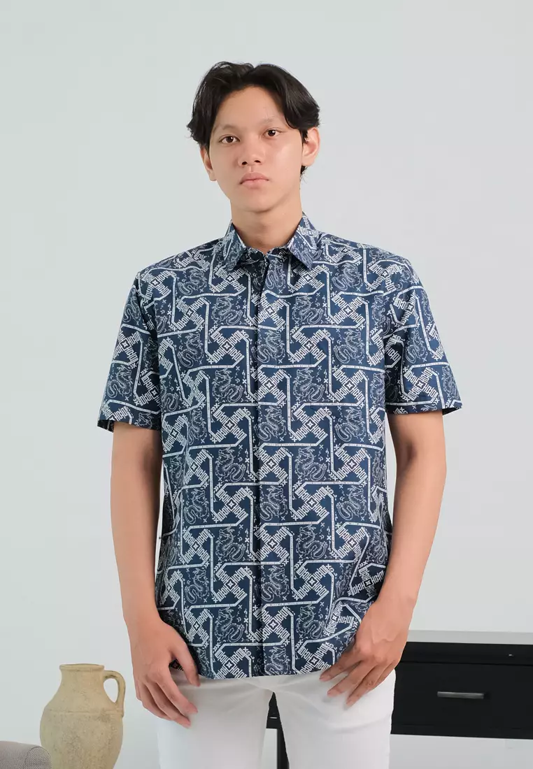 My Aksa Batik Pria Kemeja Pendek Slimfit Naga Cita Navy