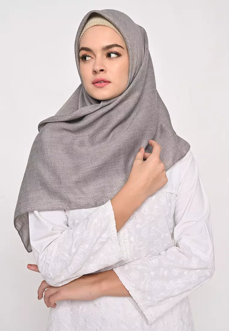 Segi Empat Voal Zaffron Jahit Tepi Grey