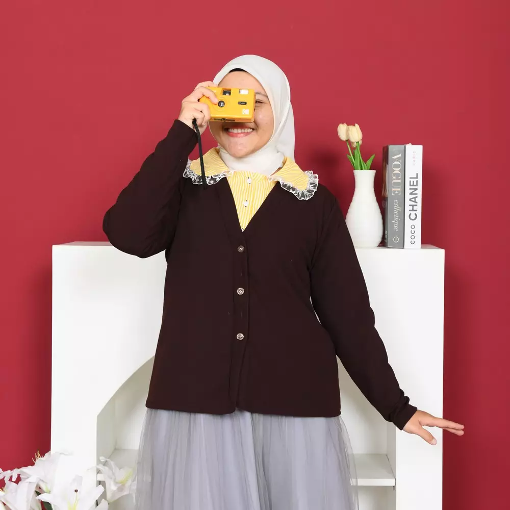More Knit Cardigan Kerah Kemeja 2 in 1 - Coffee M19939 R53S2