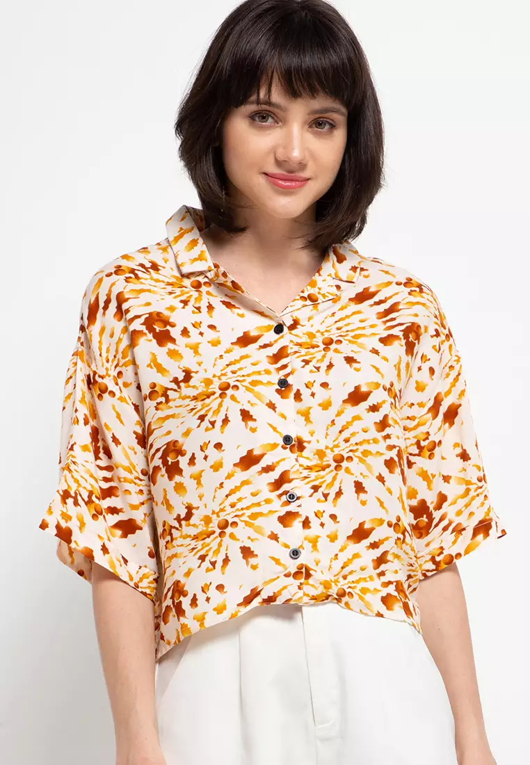 Nade Japan FT044 Kemeja Wanita Casual Motif Tie Dye C1 Orange