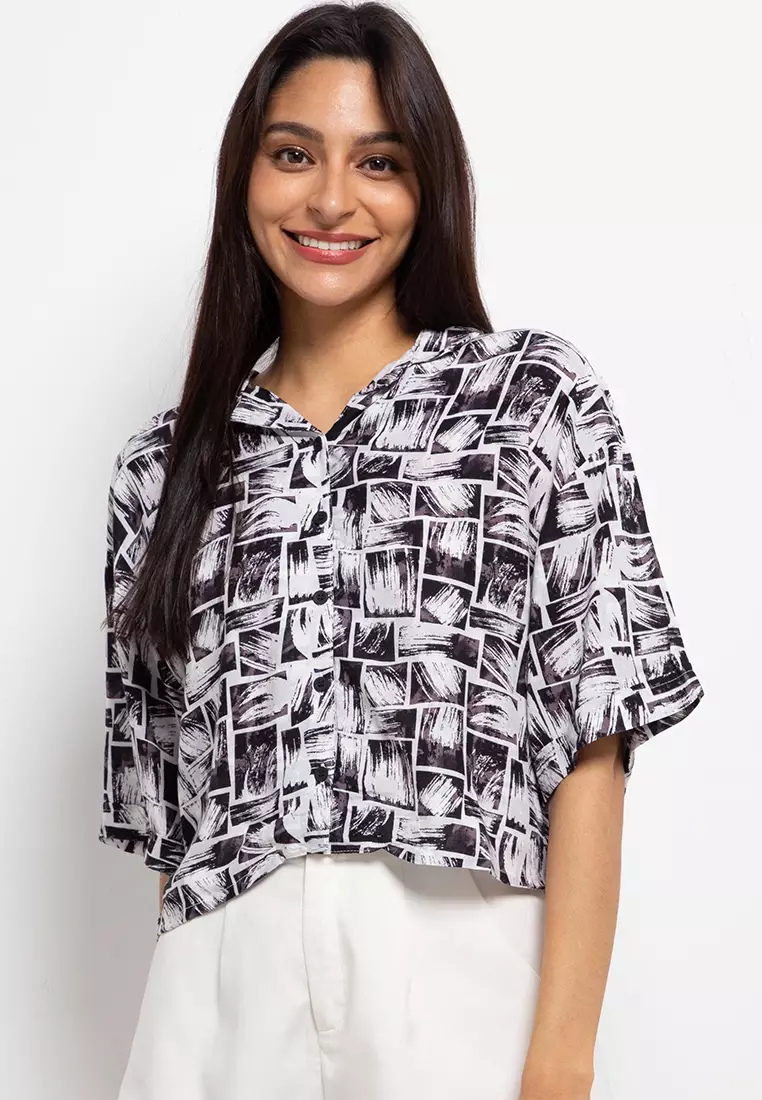 Nade Japan FT073 Kemeja Pantai Kasual Wanita Brush Box Hitam
