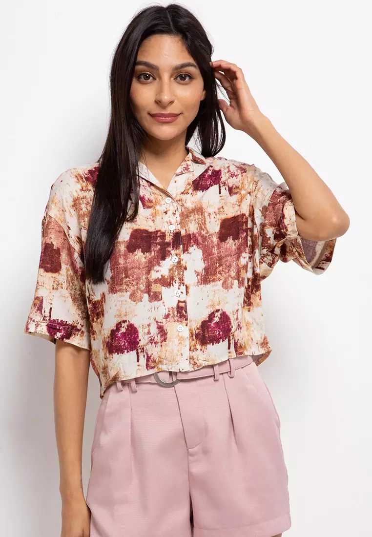 NadeNade Japan FT085 kemeja pantai Wanita Kasual abstrak coklat372500.0089000.00