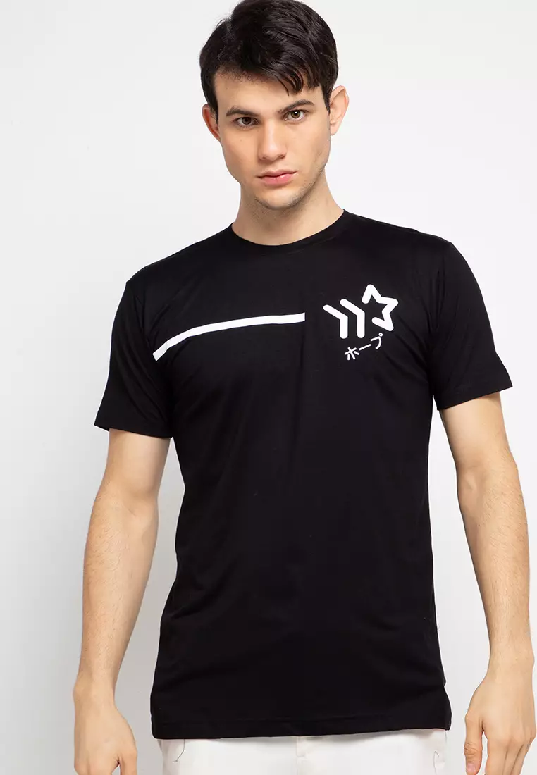 Nade NT314 Line Star Logo Hitam Kaos anti kusut Pria