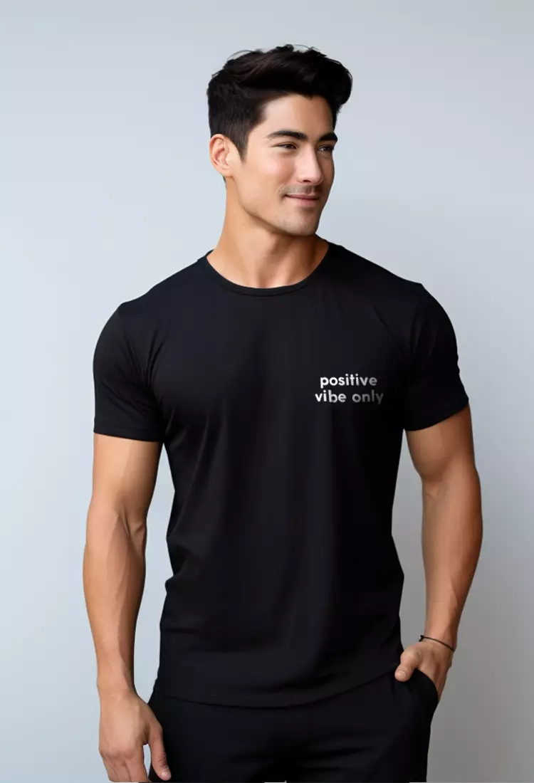 Nade NTB87 Kaos Pria Tangan Pendek Ringan Anti Kusut Positif Vibe Only Hitam