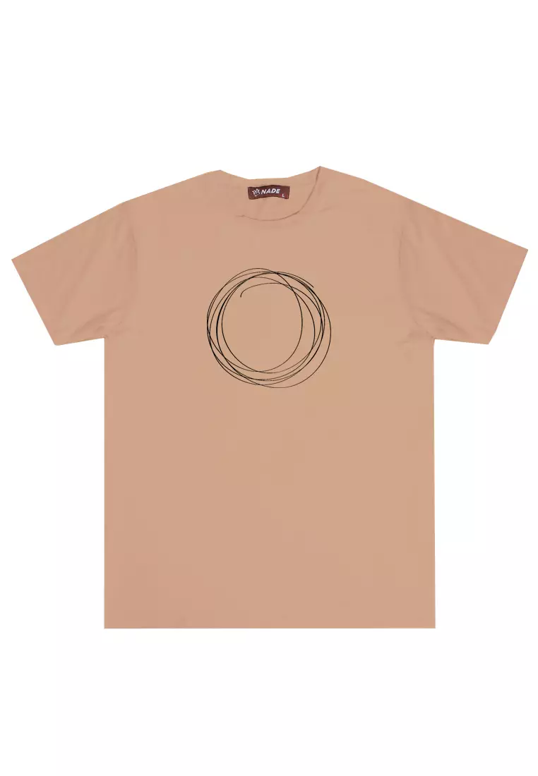 Nade NTC27 kaos distro pria anti kusut garis garis lingkaran coretan cream khaki