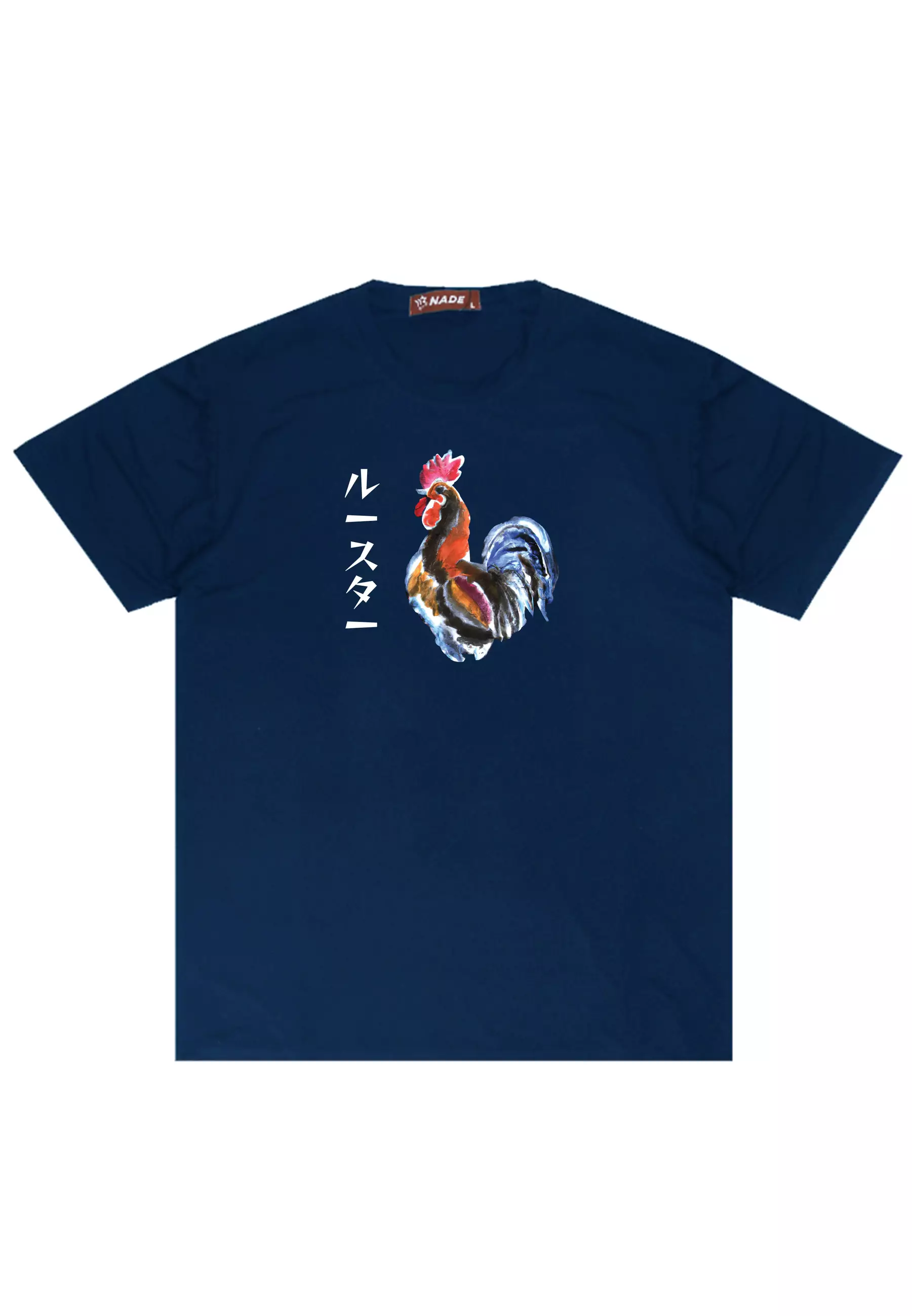 NTC78 kaos pria gambar ayam fighter jago tarung bangkok anti kusut nade navy