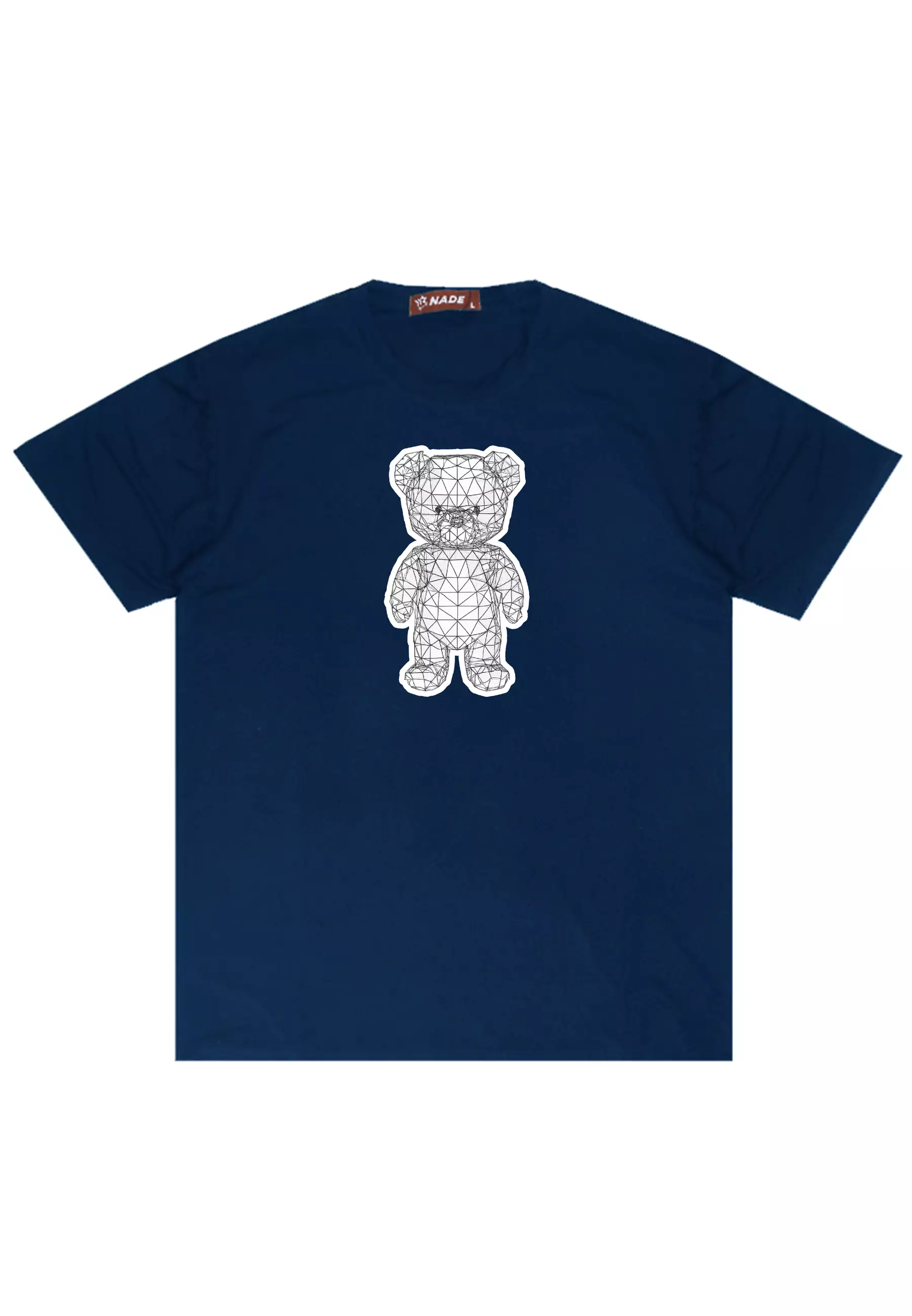 NTC96 kaos gambar beruang bear wiremesh garis garis abstrak distro pria wanita navy