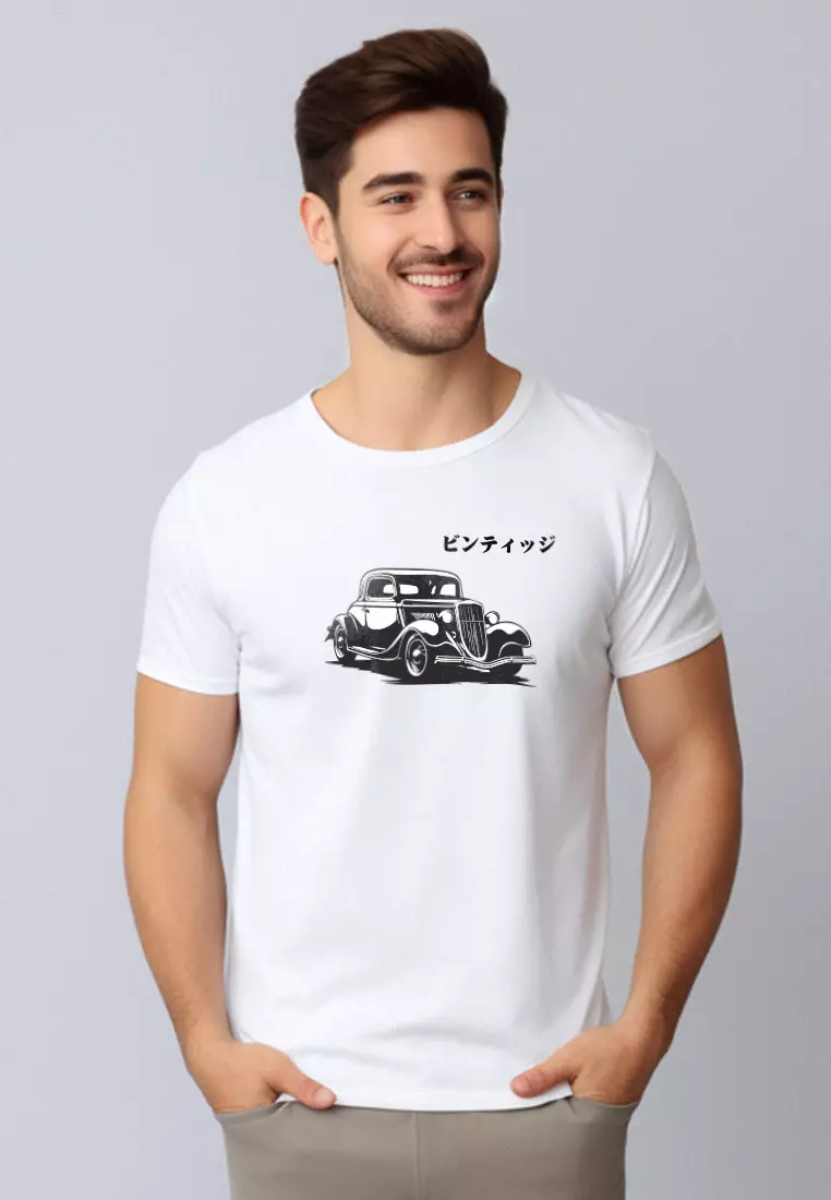 NTD58 kaos pria simpel vintage distro "mobil antik hitam" putih