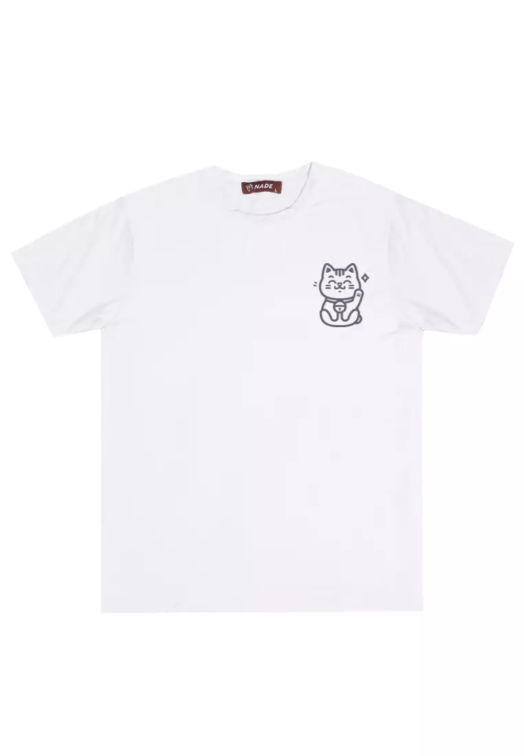 NTD63 Kaos Stretch Anti Kusut Gym Lycra Instadry "Lucky Cat" Putih