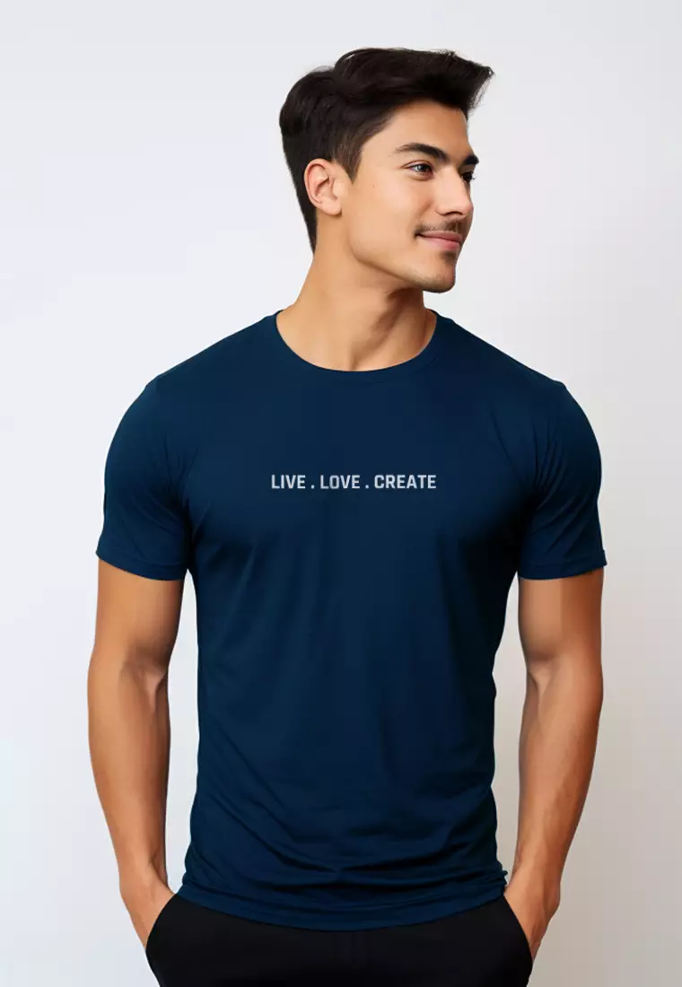 NTD79 kaos slim fit pria anti kusut lengan pendek "live love create" navy