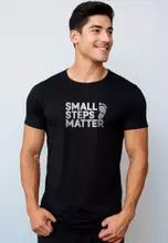 NTD81 kaos slim fit pria anti kusut lengan pendek "small step matter" hitam
