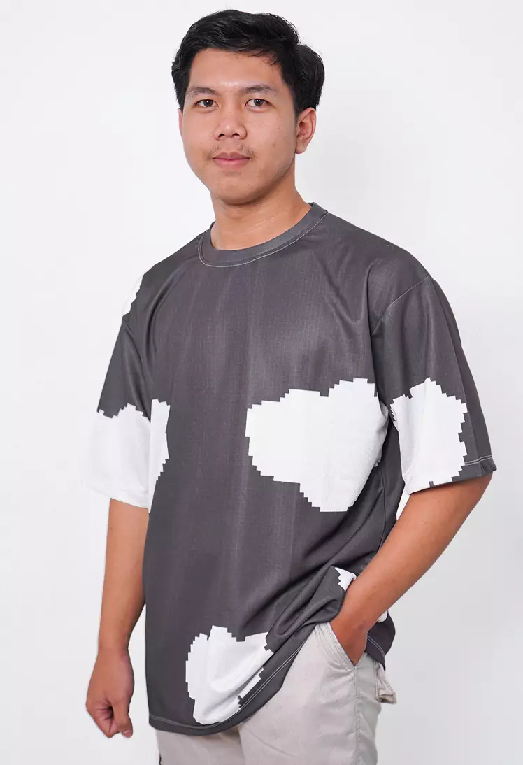 NX017 kaos oversize awan clouds full print motif abu efek rajut knitted distro streetwear abu