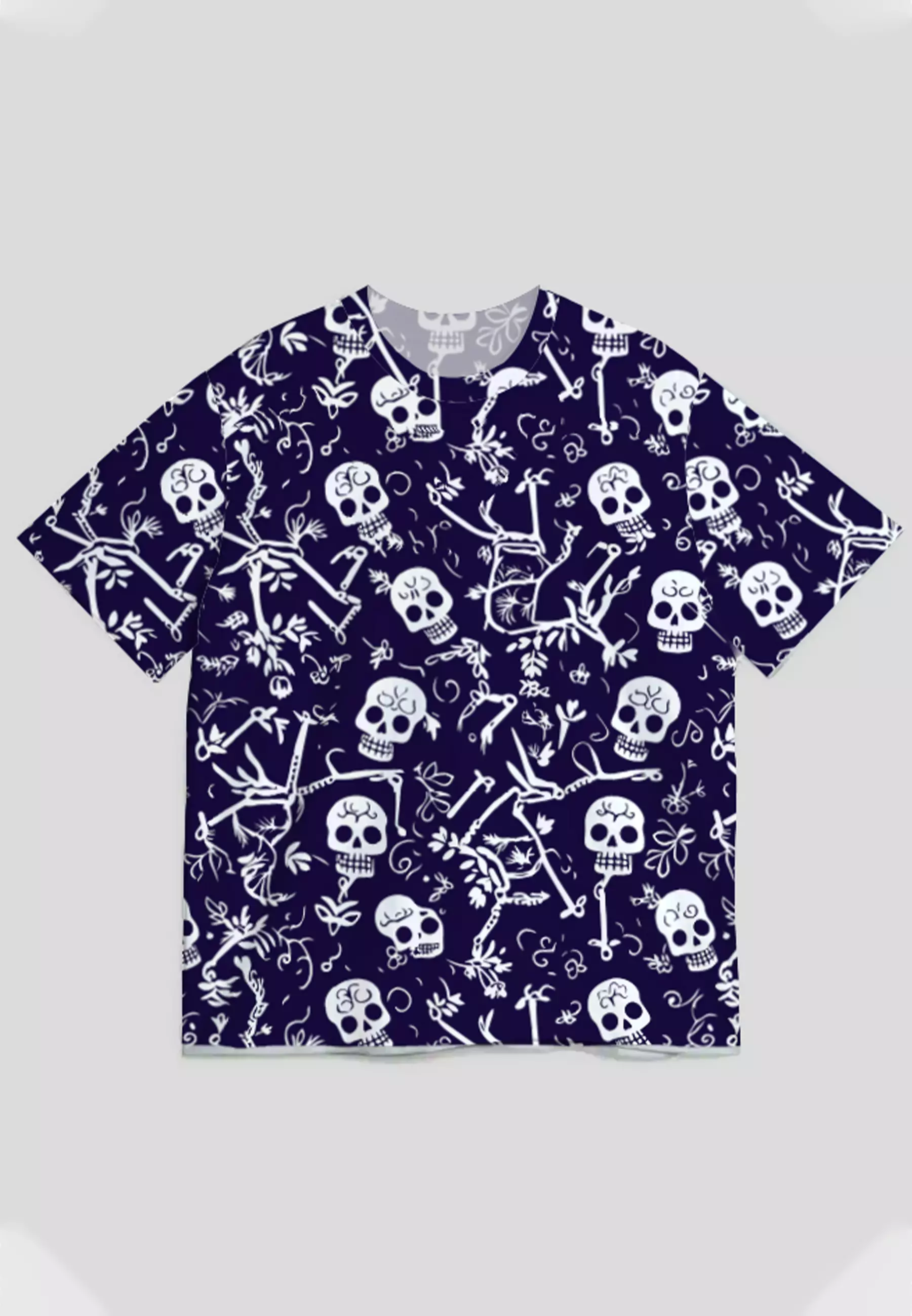 NX023 kaos oversize full gambar motif print bahan tebal light scuba tengkorak skull navy putih