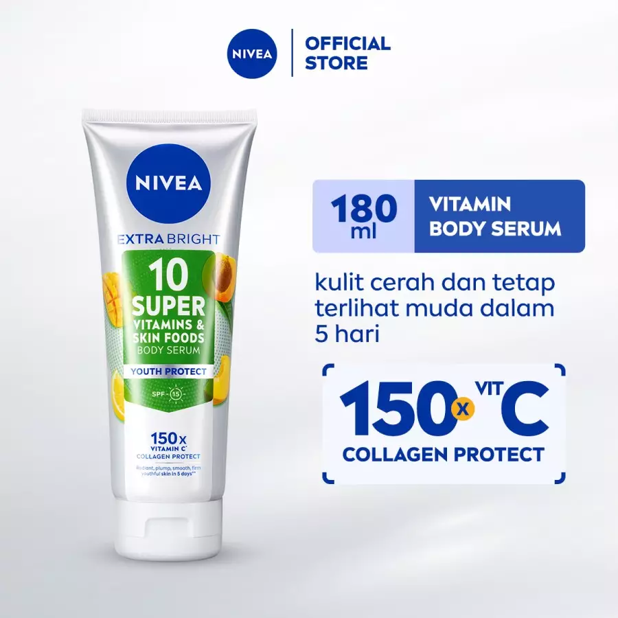 NIVEA Body Serum Extra Bright 10 Super Vitamins & Skin Foods Youth Protect Collagen 180ml