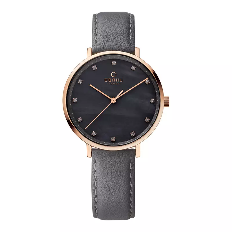 Jam Tangan Wanita Obaku V186LXVJRJ Vest Pebble Grey Mother Of Pearl Dial Grey Leather Strap