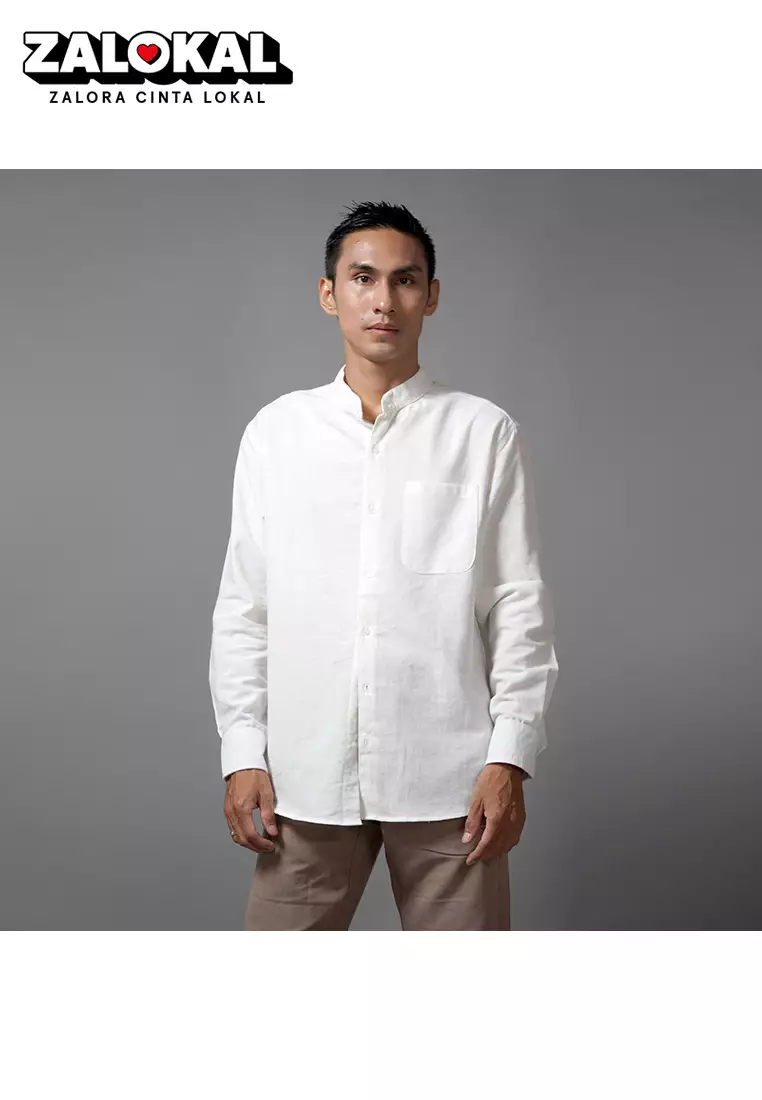Okechuku ASHRAF Kemeja Pria Casual Linen Baju Koko Kemeja Lengan Panjang - Brokenwhite299900.00149900.00