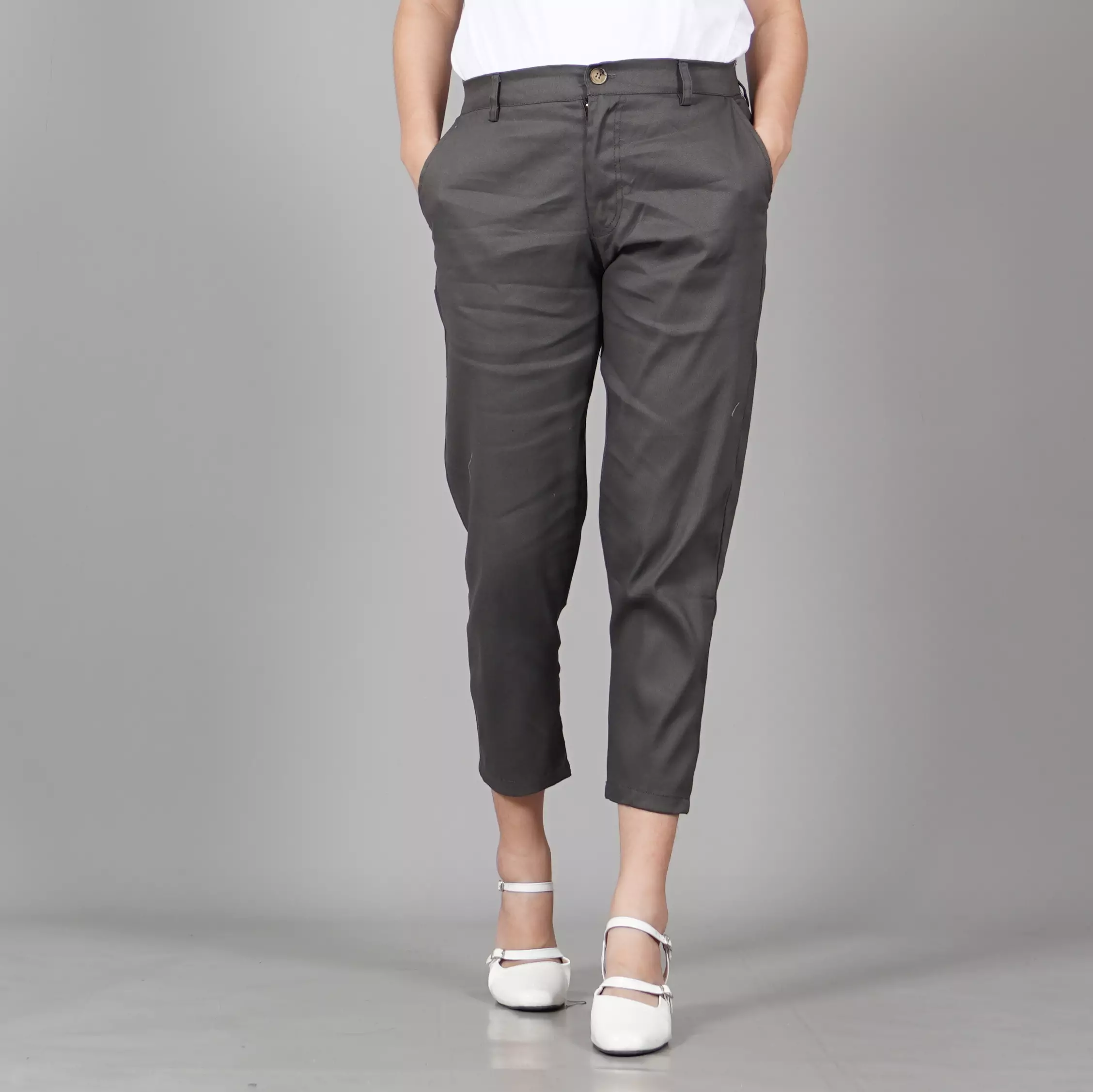 AURORA Celana Chino 3/4 Chinos Chino Pants Wanita - ABU TUA