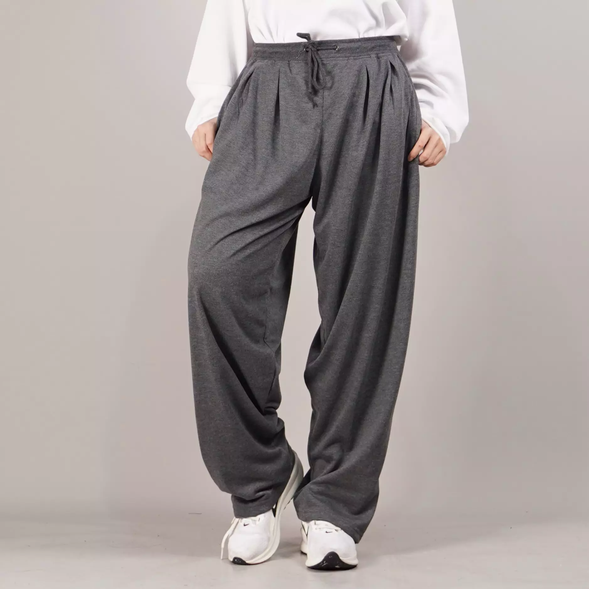 OkechukuBAGGY PANTS Celana Wide Leg Celana Wanita Baggy Loose Fit Pants Celana Loose Pants - ABU TUA250000.00139900.00