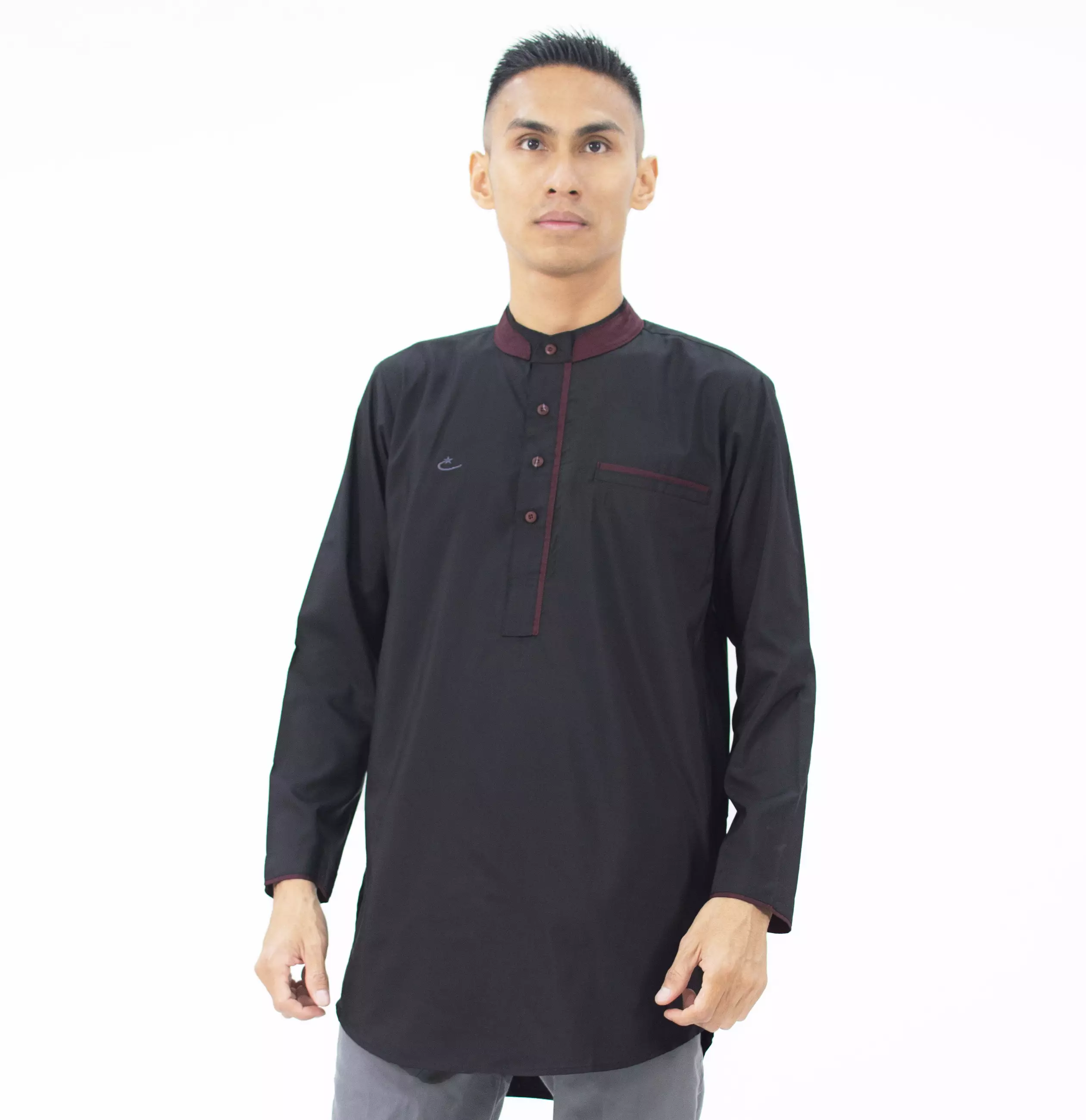 DHABI Baju Lebaran Baju Koko Lengan Panjang Kemeja Koko Kemeja Kurta Pria - HITAM