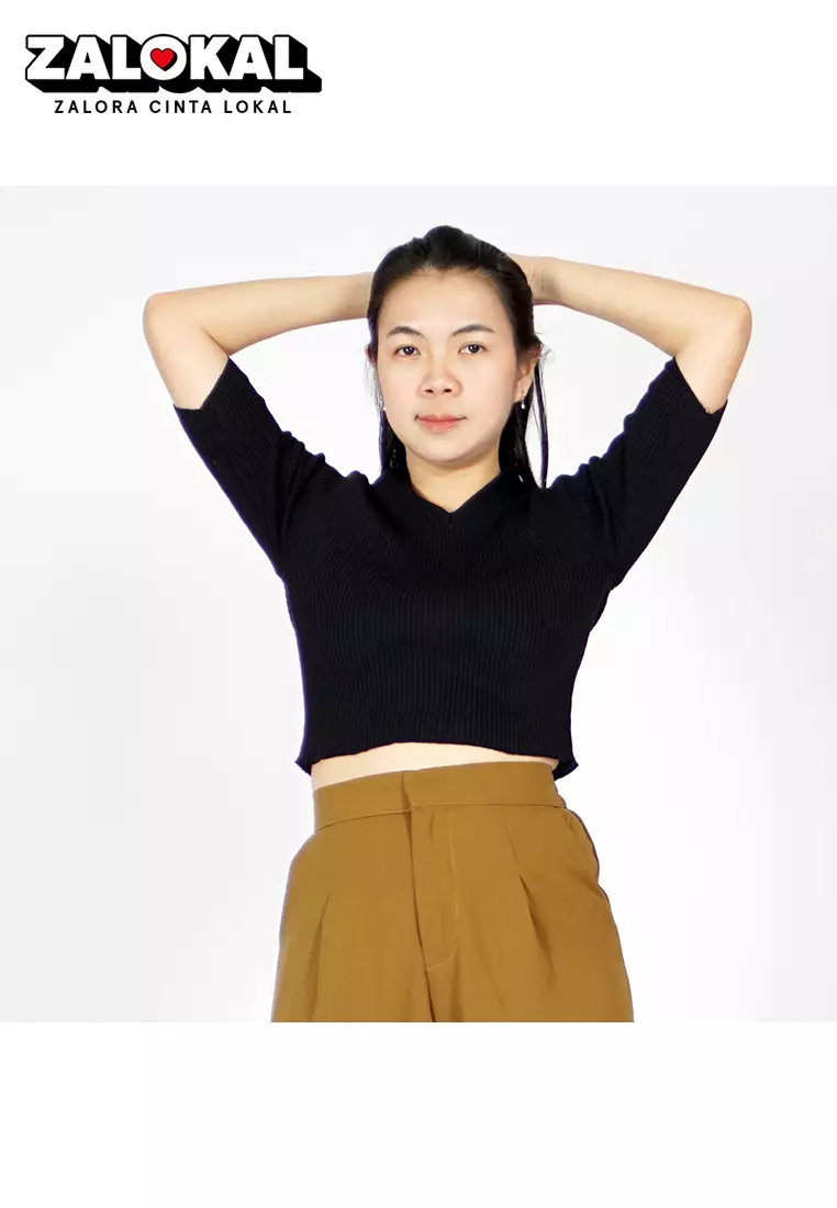 Okechuku HANA Knit Crop Top Atasan Crop Rajut CropTop Rajut Gaya Korea - Hitam99900.0059900.00
