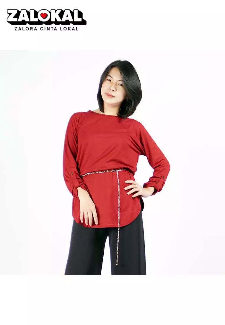 JASMINE TOP Tunik Polos Kaos Lengan Panjang Wanita Oversize TShirt - Marun