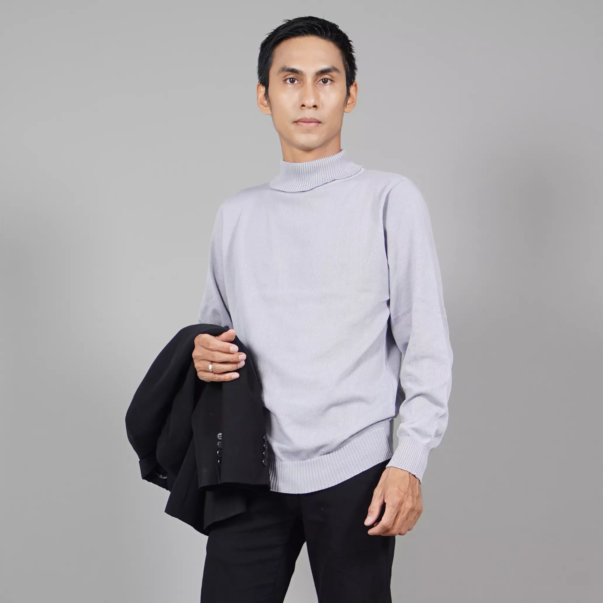JEHOON Atasan Rajut Pria Knit Outer Turtle Neck Pria - ABU MUDA