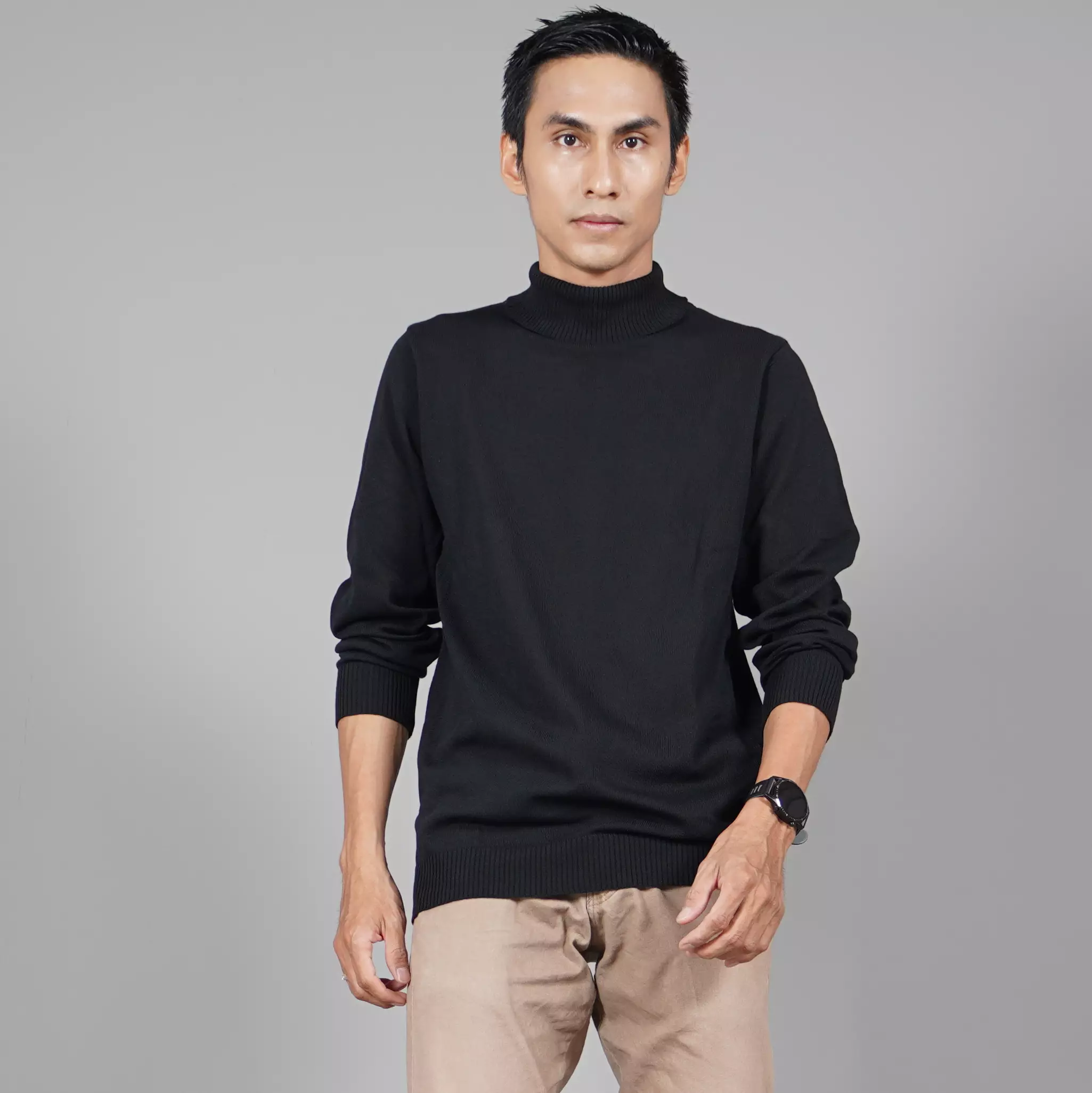 JEHOON Turtle Neck Knit Outer Sweater Rajut Pria - HITAM