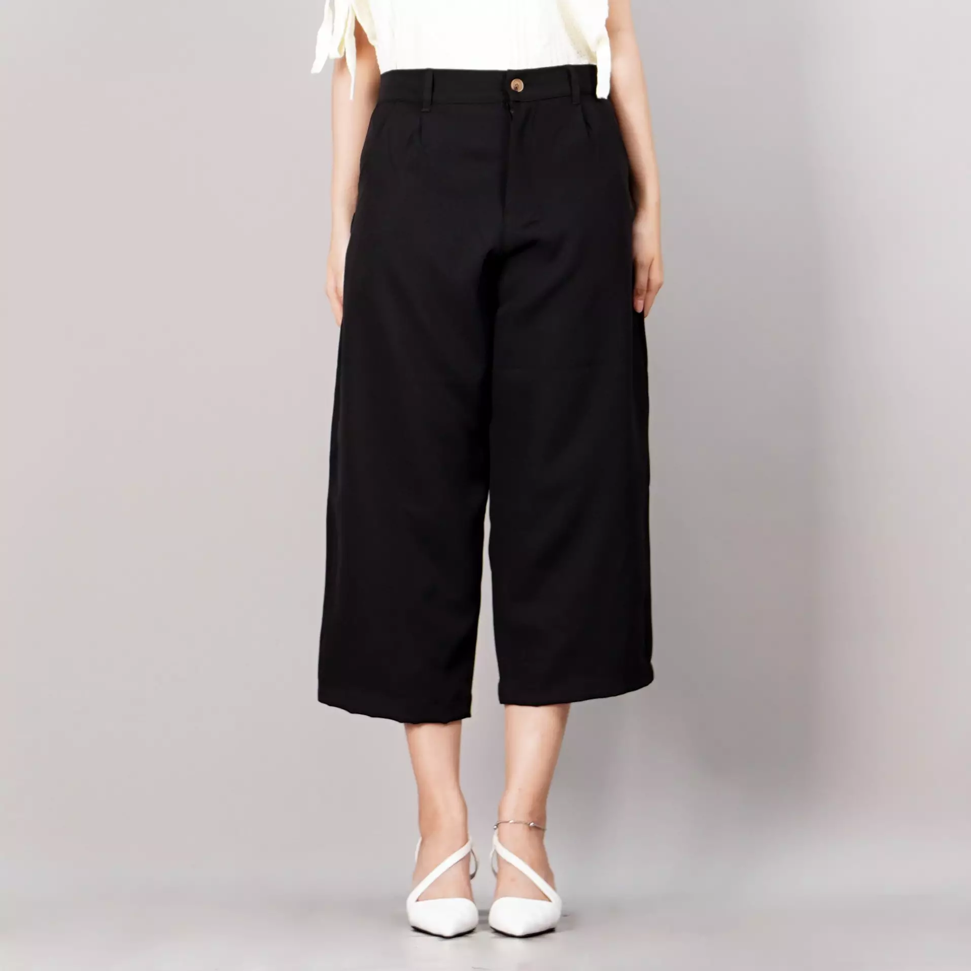 OkechukuMONICA Celana Cropped Wide Leg Celana Wanita 3/4 Celana High Waist Wide Leg Pants - HITAM199900.00129900.00