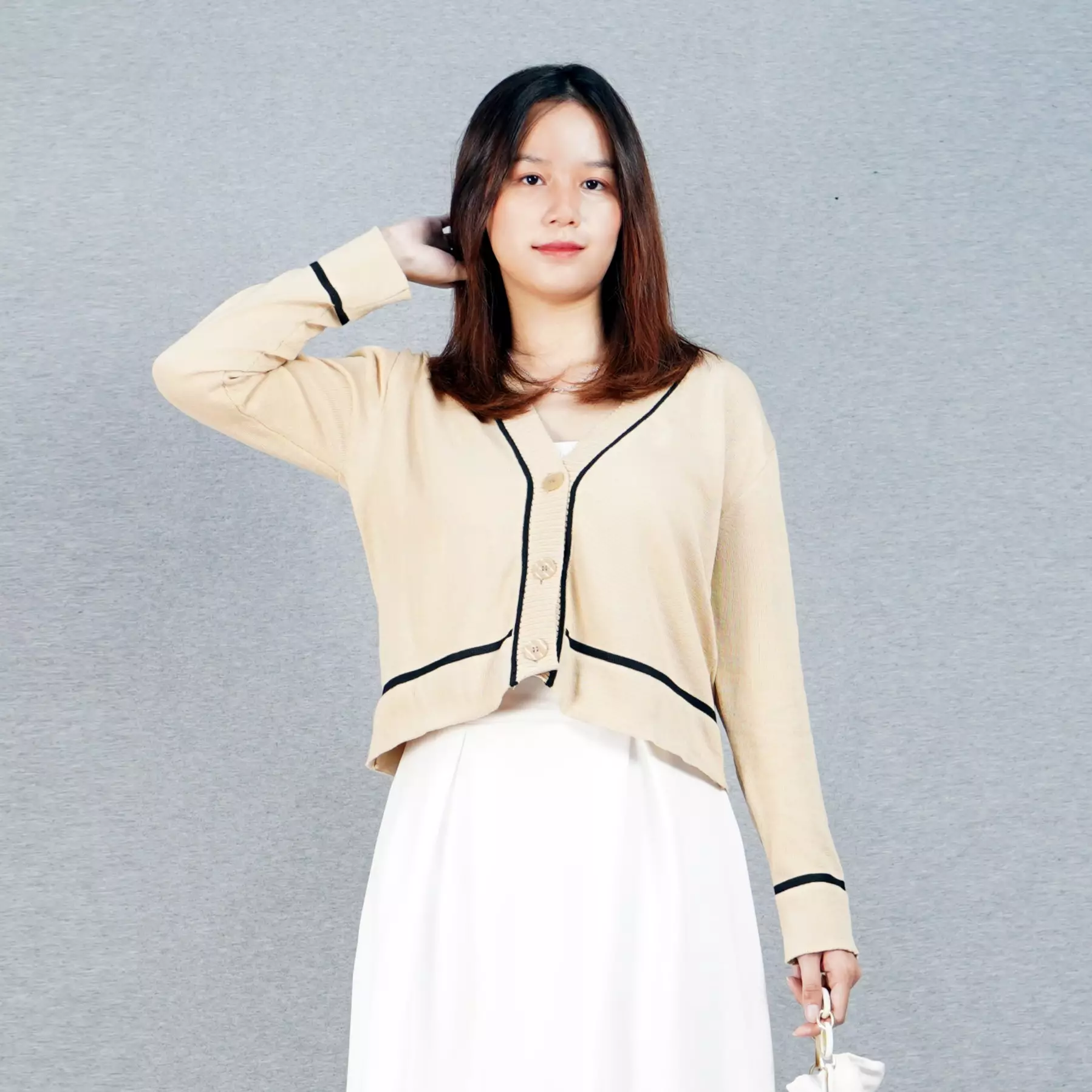 NICOLE Knit Cardigan Kardigan Rajut Wanita Cardigan Rajut Wanita - LATTE