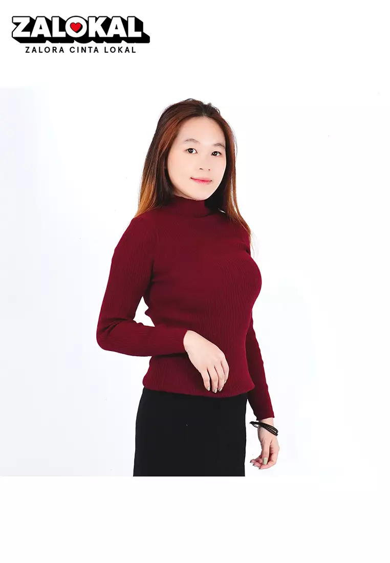 OKECHUKU Elza - Sweater Rajut Sweter Leher Tinggi Knit Switer Korean Style
