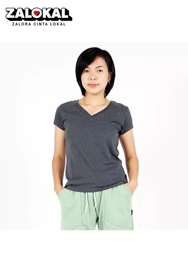 OkechukuOKECHUKU New Vioree Twotone Kaos Leher V Wanita V Neck T Shirt - Abu Tua99900.0039900.00