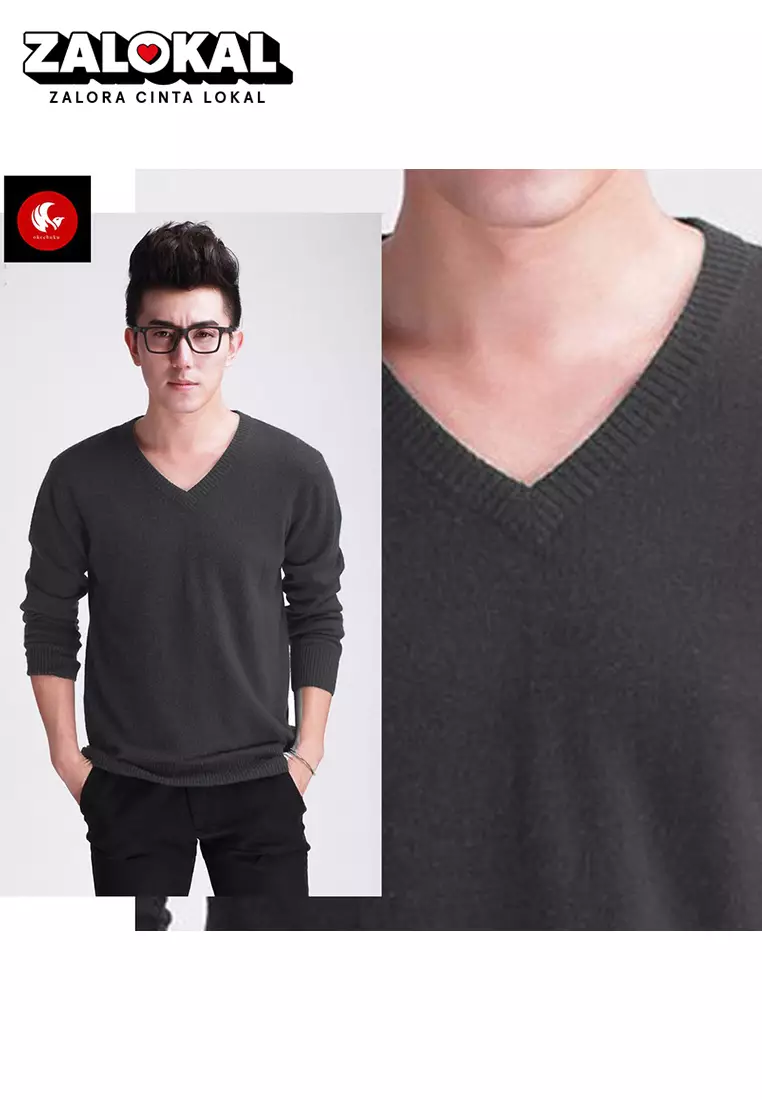 OKECHUKU Vleur Sweater Rajut / Switer Knit Pria Katun Basic Polos Leher V Neck