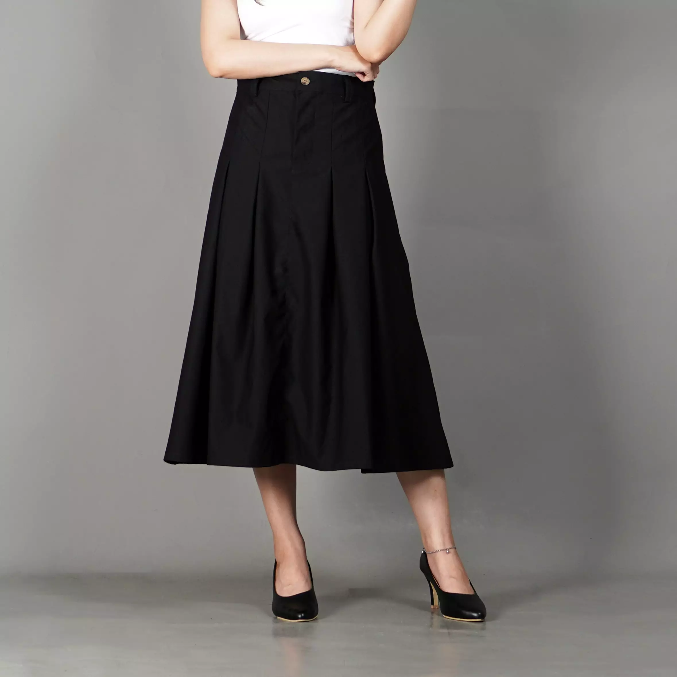 RUBY Rok A-Line Skirt Midi Skirt Rok Lipat Rok Highwaist 3/4 - HITAM
