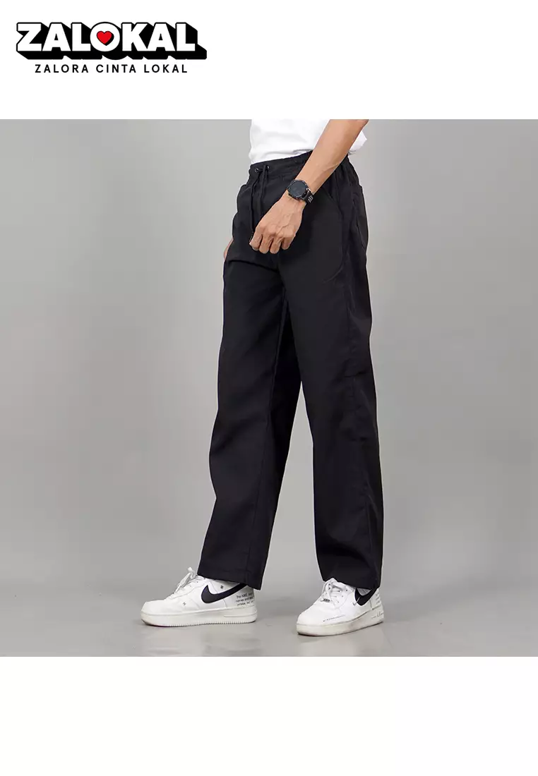 OkechukuSAM Celana Pria Panjang Celana Loose Pants Pria Baggy Pants - HITAM250000.00175000.00