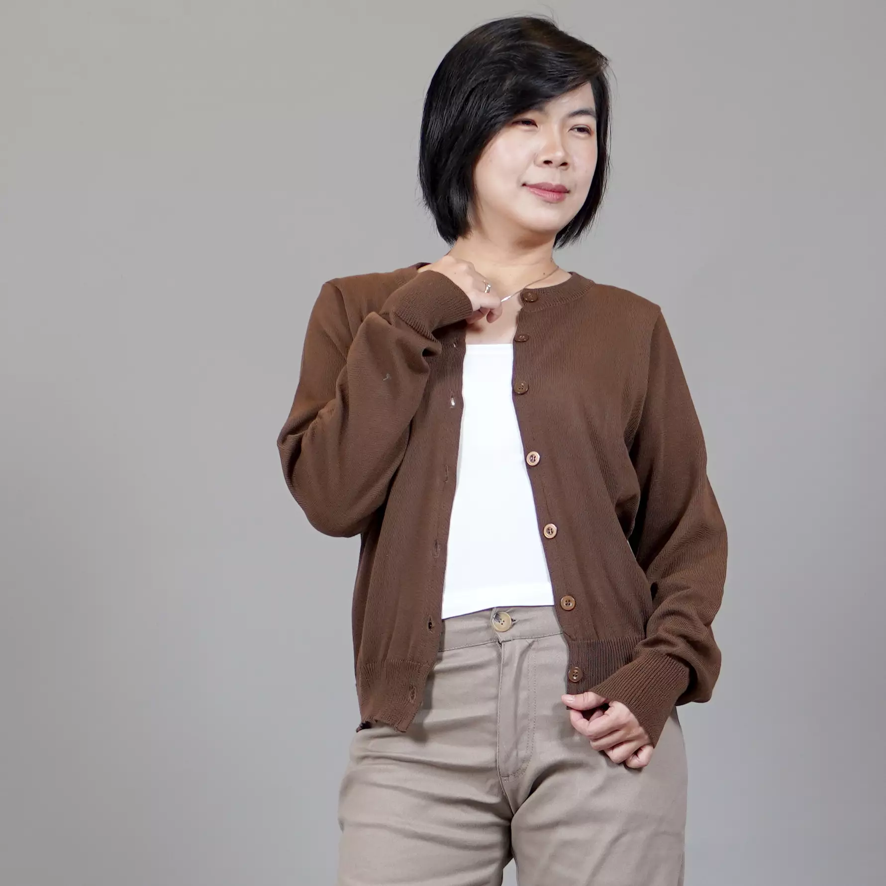 SANDRA Cardigan Wanita O Neck Kardigan Wanita Leher O - BRONZE