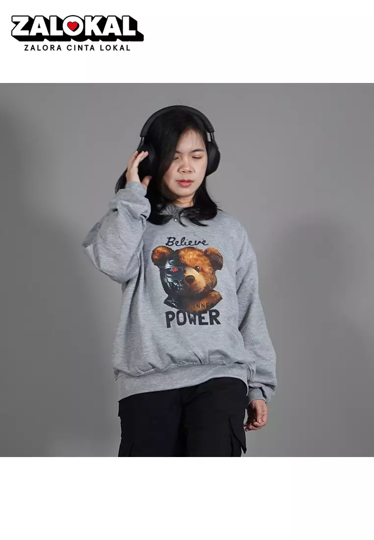 Okechuku Sweater Sablon POWER Sweater Wanita Oversize Sweater Oversize Unisex - Abu Muda125000.0099900.00