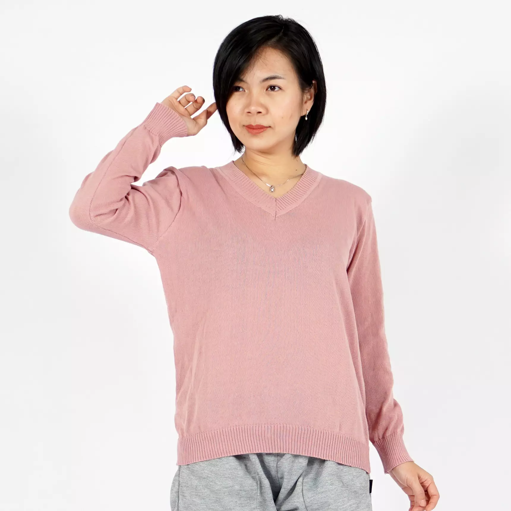 Vanessa Knit Outer Korean Style V Neck Knit Sweater V Neck - PINK