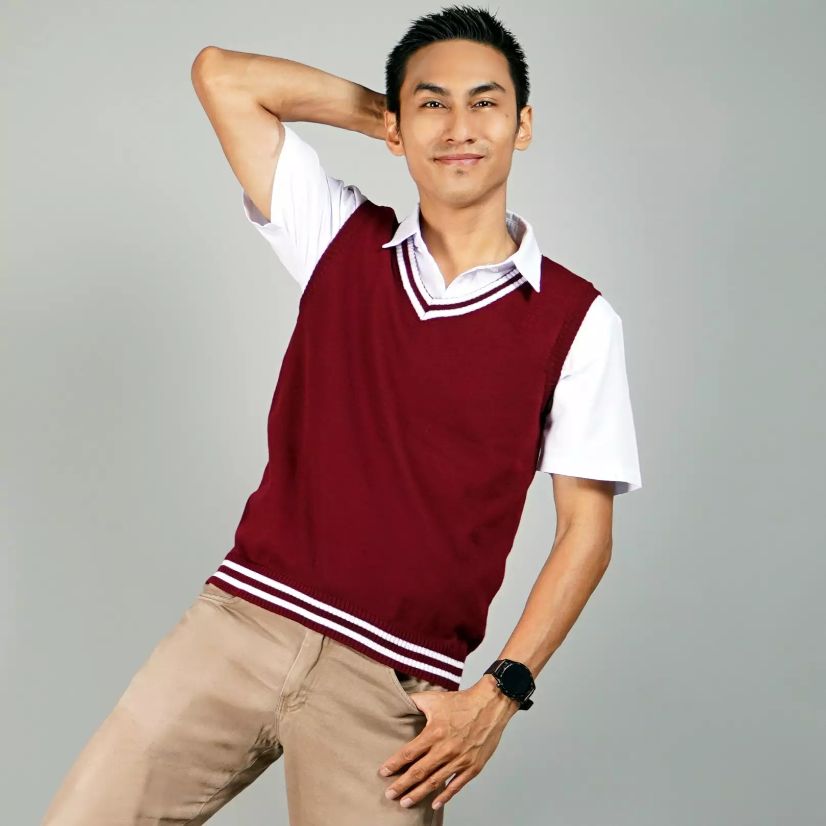 VICKO Rompi Marun List Putih Rompi Seragam SD Rompi Rajut Marun - MARUN