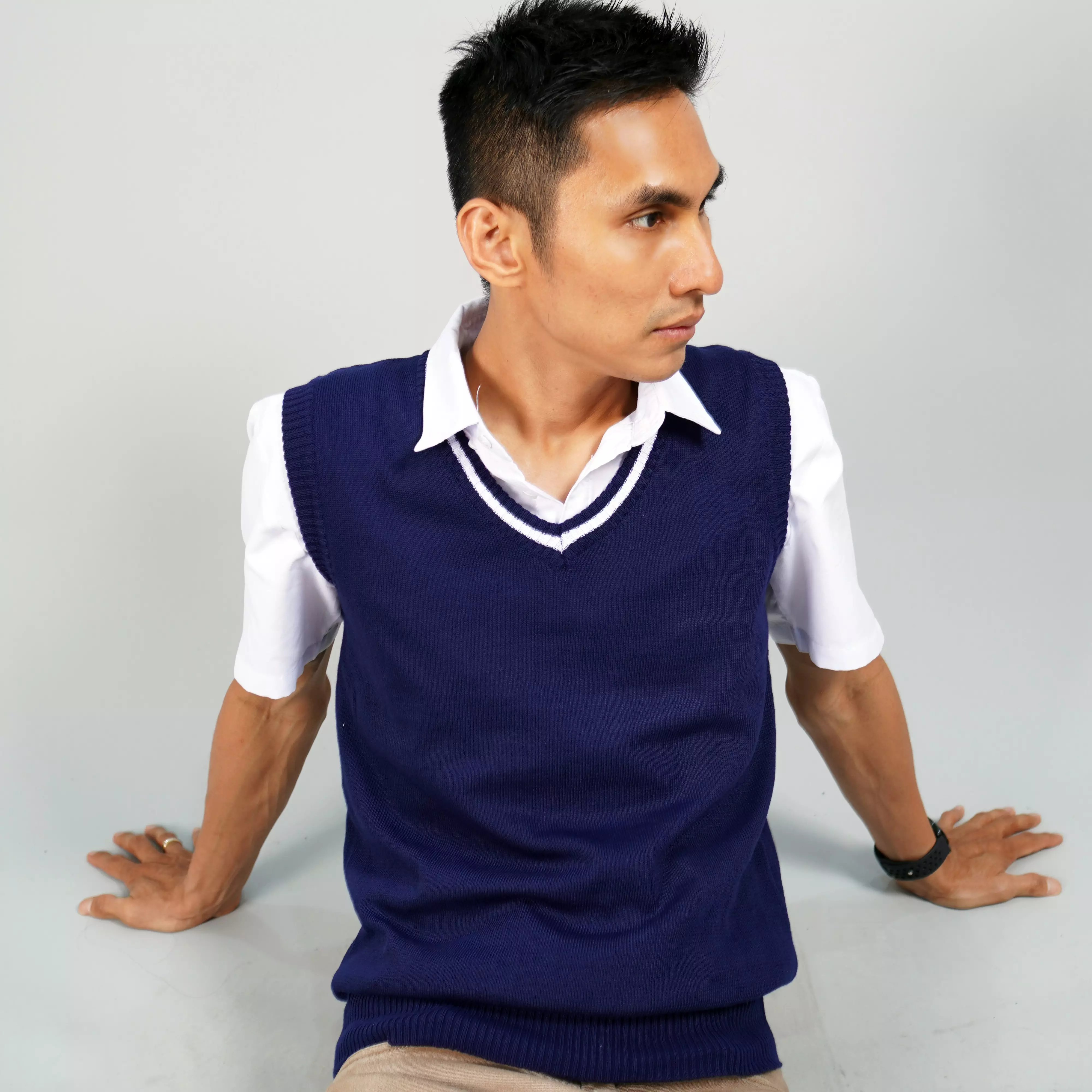 VIJAY Knit Vest Rompi Rajut Rompi Pria Navy Rompi List Leher Rompi Seragam - NAVY