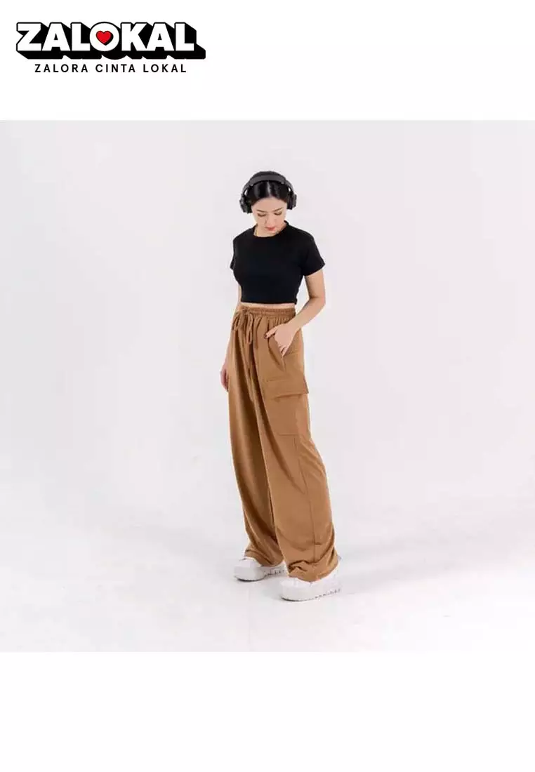 YOONA Celana Kargo Wanita Gaya Korea Cargo Pants Korean Style - BRONZE