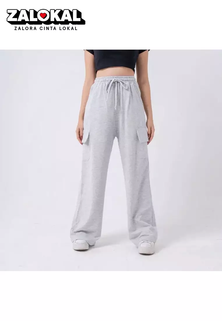 OkechukuYOONA Celana Kargo Wanita Gaya Korea Cargo Pants Korean Style - GREY199900.00125000.00